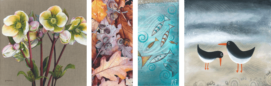 Watercolours, acrylics, oil, pencil, gesso, mixed media & collage are all explored.